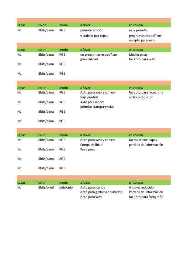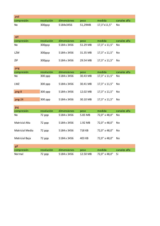 Tabla de formatos - Manuela Castillejo
